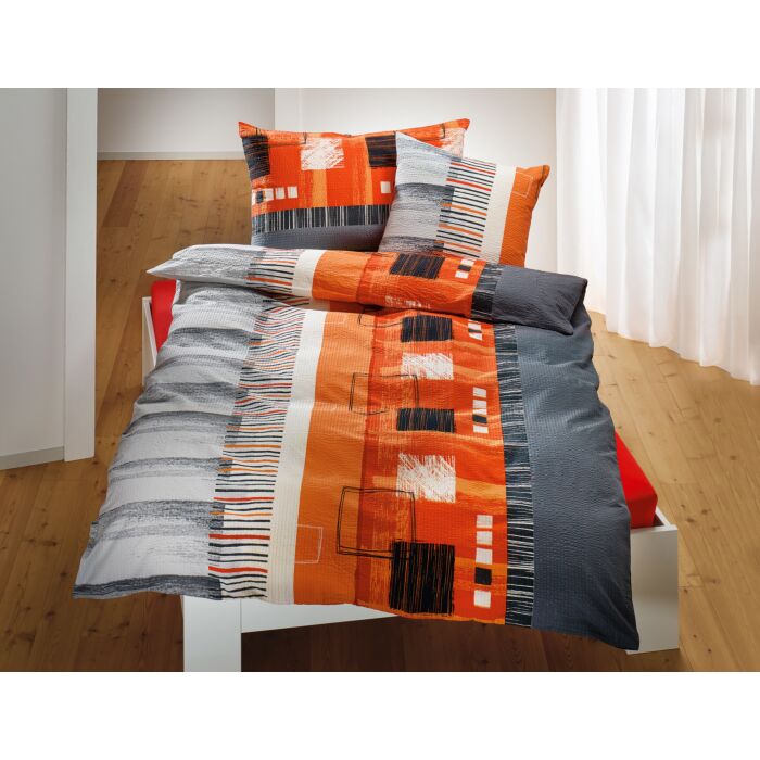 Linge de lit orange orné de rayures et de traits