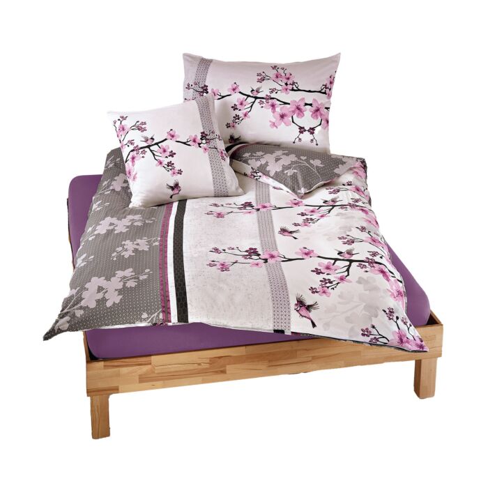 Conférez à votre chambre un charme romantique grâce à cette parure de lit ornée de magnifiques fleurs de cerisier dans des tons violet et anthracite. Dans sa housse en jersey facile d’entretien, on dort avec une douceur perceptible.